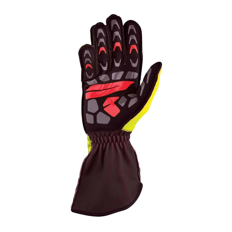 New OMP kart gloves with external seams and silicon rubber palm for maximum grip. Bellows on knuckles and fingers for best freedom of movement and breathable inserts in mesh fabric to increase comfort. Silicon rubber protection on fingers, slanted wrist cut with elastic band. Fresh design and modern color range. Not fire-resistant, therefore only for karting use.